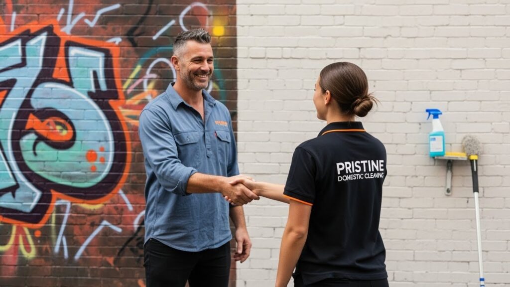 Vandalism can be a major headache for Melbourne homeowners. Our graffiti removal service uses safe yet effective chemical treatments to lift paint from various surfaces without damaging the underlying material. We pride ourselves on being a responsive domestic cleaning provider that helps keep your neighborhood looking its best. Our team is fully trained in domestic cleaning insurance Australia standards for your peace of mind. All your graffiti removal needs are handled swiftly and professionally.
