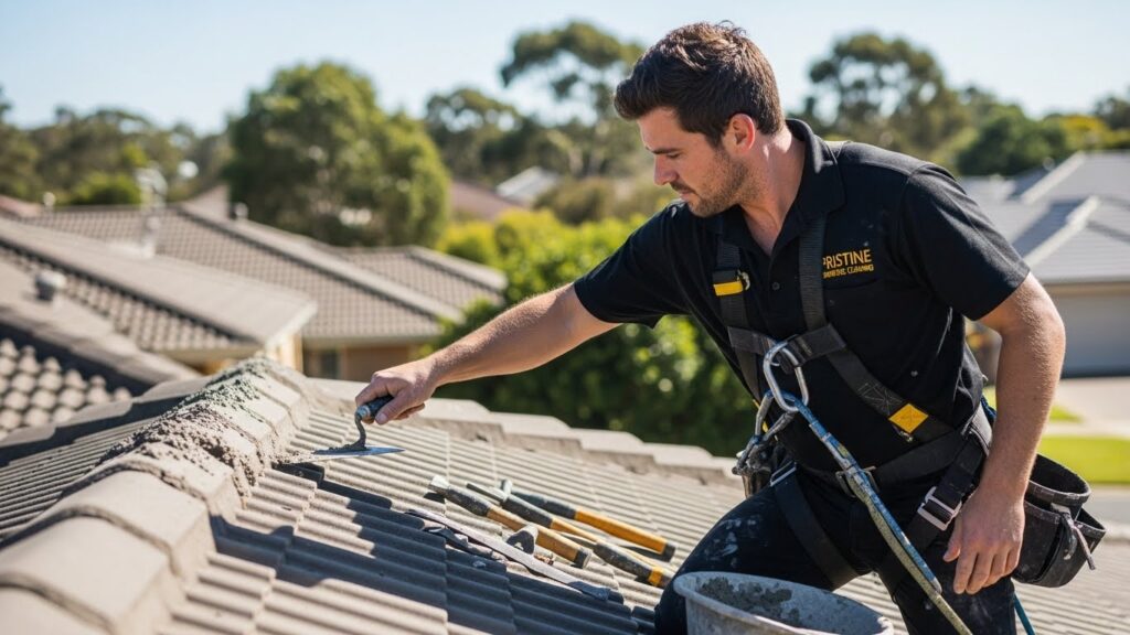 Ensure your roof tiles are secure and weather-tight with our roof rebedding and repointing services. Over time, the mortar on your ridge caps can crack, leading to leaks. Our specialists use modern flexible pointing compounds that withstand the Australian sun. This technical service is what sets us apart from any standard Australian cleaning job provider. All your roof rebedding and repointing needs are handled by our structural maintenance experts